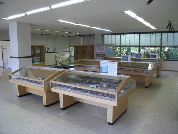 黒耀石石器の製作工程が明瞭にわかる出土資料が全国の黒耀石とともに展示されています。