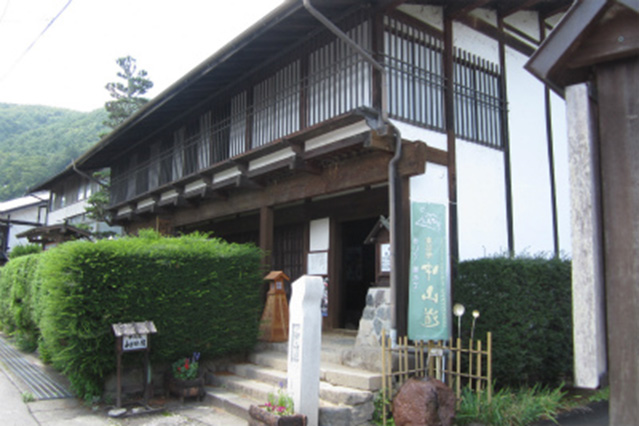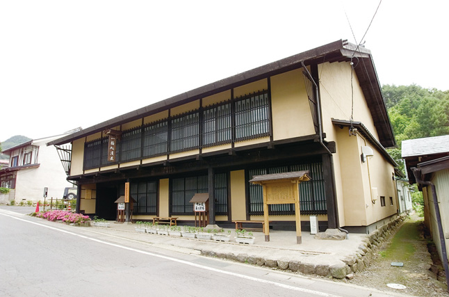 17世紀中頃より、酒造業と醤油の醸造も手がけ、宿場の役職も兼ねていました。母屋の端部には「本うだつ」がみられ、内部の天井吹き抜けは、太い柱や豪快な梁組みにより圧倒されます。享保16年(1731)以前に建てられたと考えられ、県内では最も古い町屋建築であると言われています。※個人住宅のため、一般公開はしておりません。