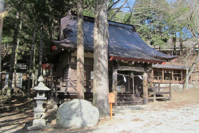 石尊大権現、明動力篤之行者、神清霊神、長野神霊神、神明霊神、大聖不動、普寛霊神、木食一心霊神、御嶽山座王大権現、三笠山刀利、馬頭観音、馬頭大士、水神天、百万遍供養塔、道祖神など多数の石碑が見られ、修験道関係の碑が多い。